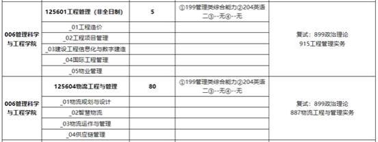 2.专业学位:物流工程与管理(125604)、工程管理(125601)