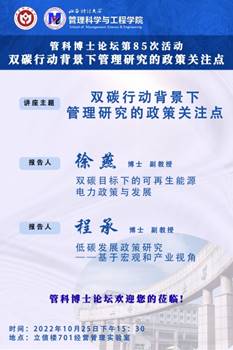 采用“线上线下相结合的”方式举办第85次管科博士论坛。本次活动主题为“双碳背景下管理研究的政策关注点”,旨在进一步凝练学科方向和特色,做好双碳背景下国家级项目选题,进一步推动学院一级学科博士点申报工作。69av