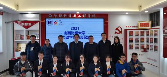 党委书记支明泽宣读受助名单,学院领导向受助学生颁发了奖杯。