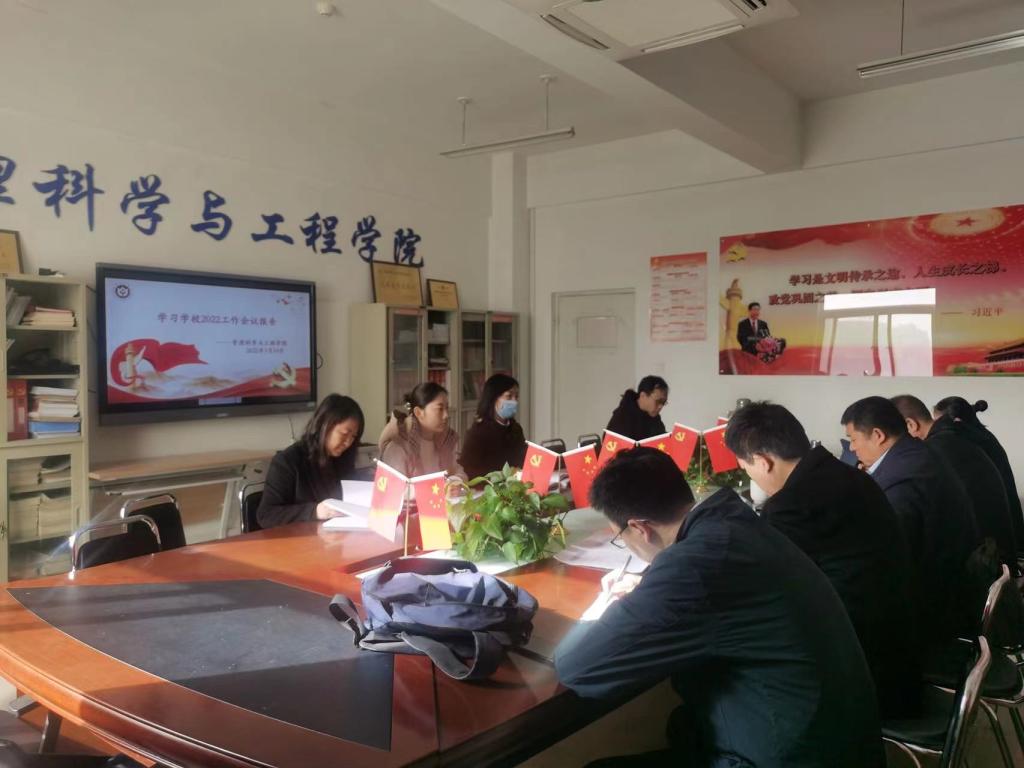 党委召开理论学习中心组(扩大)学习会,传达学习学校2022年工作会议精神,并结合会议精神,谋划部署学院2022年重点工作。学院全体党政人员参加会议,会议由院党委书记主持。