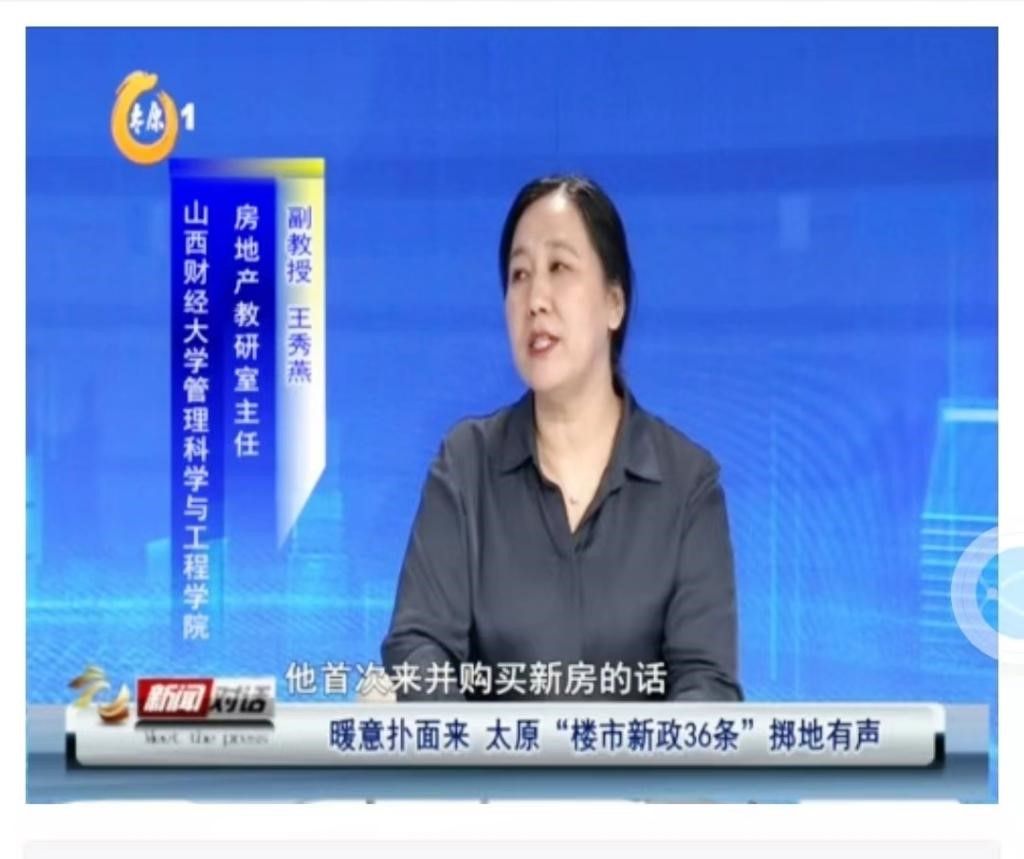 6月7日王秀燕老师再一次受邀作为嘉宾参加了太原电视台新闻综合频道“新闻对话”节目《暖意扑面来,太原“楼市新政36条”掷地有声》。节目中王老师从专业视角分析了新政出台后购房者能省多少钱、吸引人才的力度、楼市预期和房价的走势以及对城市经济发展的影响等问题,并建议作为消费者为了住有所居要抓住政策红利期,该出手时就出手。同时市场主体应该充分理解政策的深度含义,把握好机遇,为市民提供优质的住房产品和居住服务,理智且有序的投资开发。节目播出后引起了社会的广泛关注和强烈反响。
