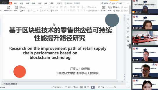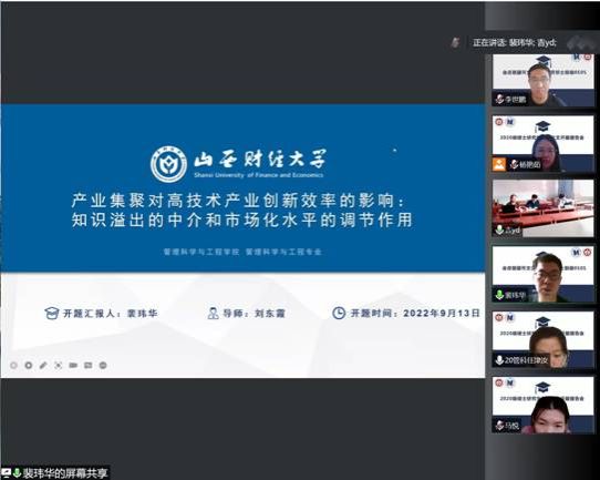 于2022年9月13日举行2020级管理科学与工程专业硕士研究生开题报告会。为保证论文选题的前沿性和创新性,综合考虑当前疫情防控形势,此次开题报告会采用线上线下相结合的方式进行,20名同学线上参加、12名教师线下组成答辩小组参加此次开题报告会。
