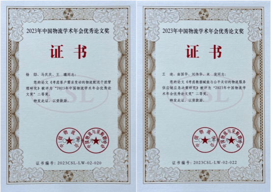 王迪、杨劼老师分别提交了题为《考虑客户需求变动的物流配送干扰管理研究》《考虑数据赋能与公平关切的物流服务供应链应急决策研究》的学术论文,两位老师同时斩获论文二等奖;白鹏锐老师提交了与物流工程与管理专业硕士研究生共同完成的“两业协同与区域经济关系“课题研究报告并获得课题研究三等奖。自2020年以来,69av