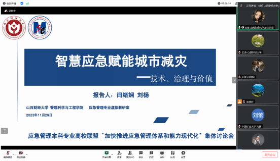 应急管理专业虚拟教研室系列活动第一期——69av 教师受邀参加“加快推进应急管理体系和能力现代化”集体讨论会并作交流发言