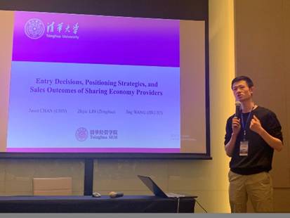 清华大学的林志杰老师作了题为《Entry Decisions, Positioning Strategies, and Sales Outcomes of Sharing Economy Providers》的报告。他从商家进入市场的动因、商家的定位策略以及销售结果三个方面对“回家吃饭”app进行了统计分析,发现对于烹饪较为喜爱的商家可以更快的投入市场,同时商家的模仿行为和对于菜式的创新都可以提高销量。